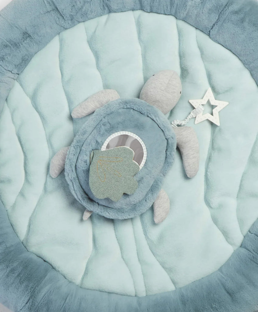 A comfy padded mat in the softest faux fur, co-ordinating beautifully with other pieces in our Welcome to the World collection, this is the perfect spot for playing or just laying. With a sweet turtle tummy time toy, hanging toys for sensory development and entertainment, musical hanging toy and a handy textured teether, this is the complete play, chill and entertainment area where baby can be comfy, safe and entertained.