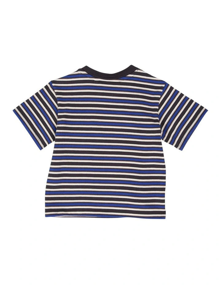 TheBlaze Tee by Animal Crackers is a short sleeve tee in our classic relaxed fit. Made from a yarn dyed stripe cotton jersey fabric, it features a chest embroidery, snap button closure at side neck, and branded flag label on side seam. Team back with our Athletics Short for the perfect summer, retro inspired outfit.