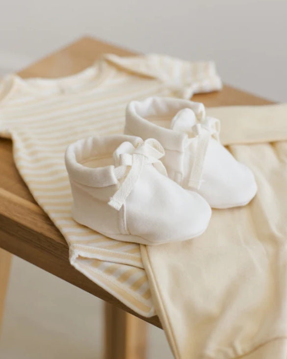 The softest baby booties to complete any outfit! Designed with ties for a secure fit.