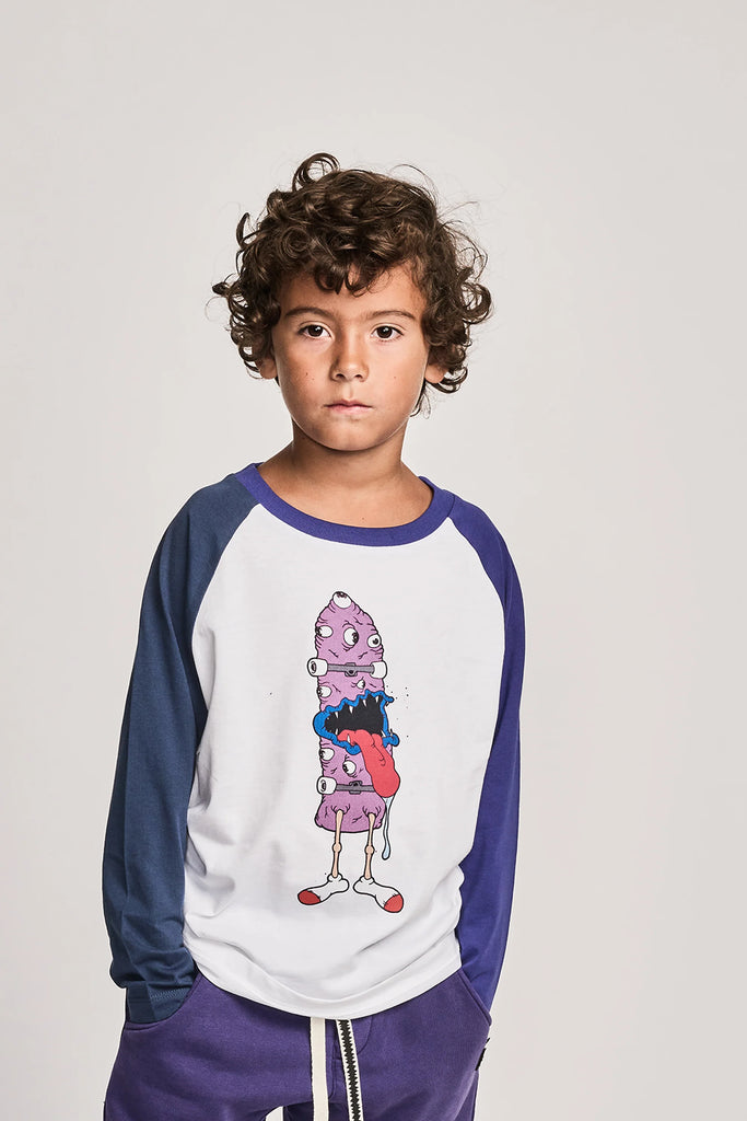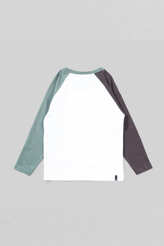 100% Cotton jersey Contrast Raglan l/s tee with front Print
