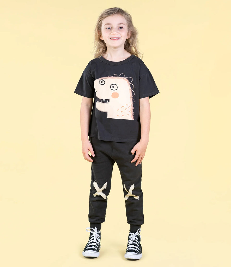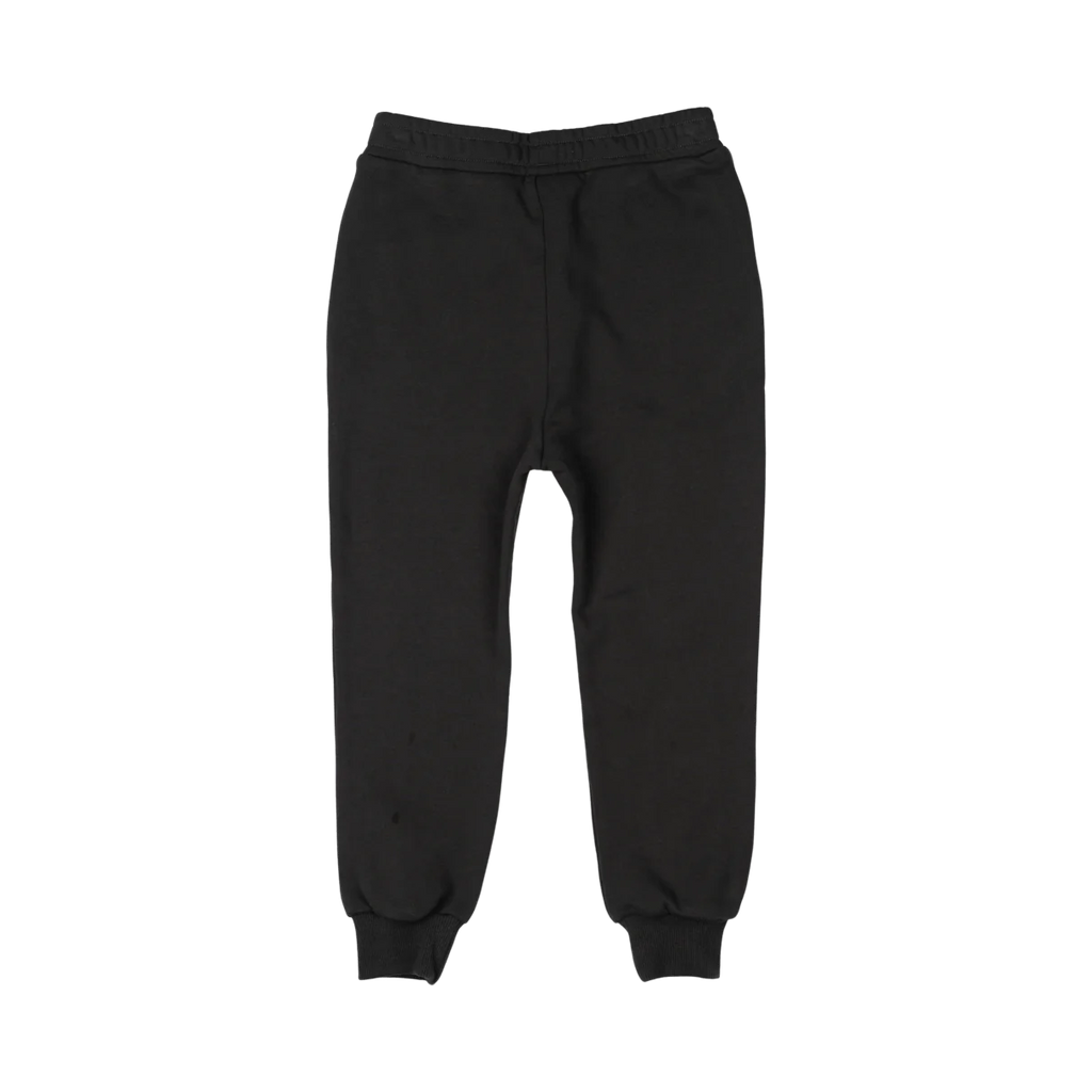 Let him conquer the day in style with our Destroyer Track Pants! These comfy boys track pants feature an elasticated waistband and black ribbed cuffs, perfect for comfort throughout playtime. Crafted from cotton French terry, they come in a sleek black base with a cool graffiti-style white "X" print on the knees. Inseam pockets offer room for little essentials, making them both stylish and practical!