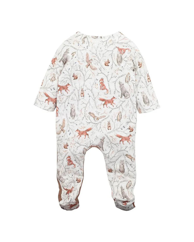 This sweet forest friends print long sleeve wrap romper made from 100% organic cotton features contrasting plain and print body panels with a sweet squirrel appliqued graphic with embroidery on the front. Perfect for keeping your little one warm, comfortable and stylish this winter.