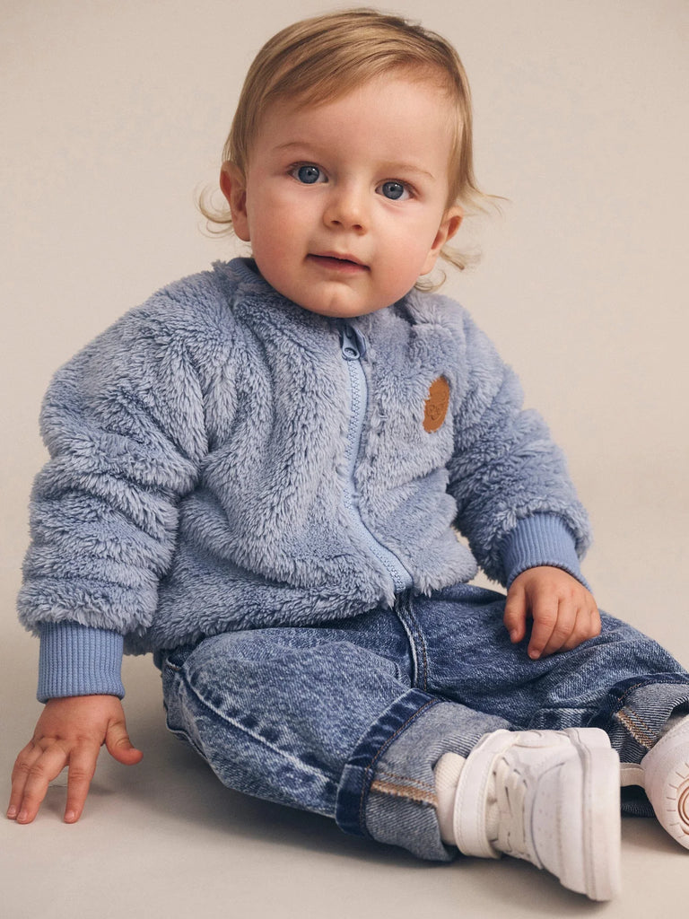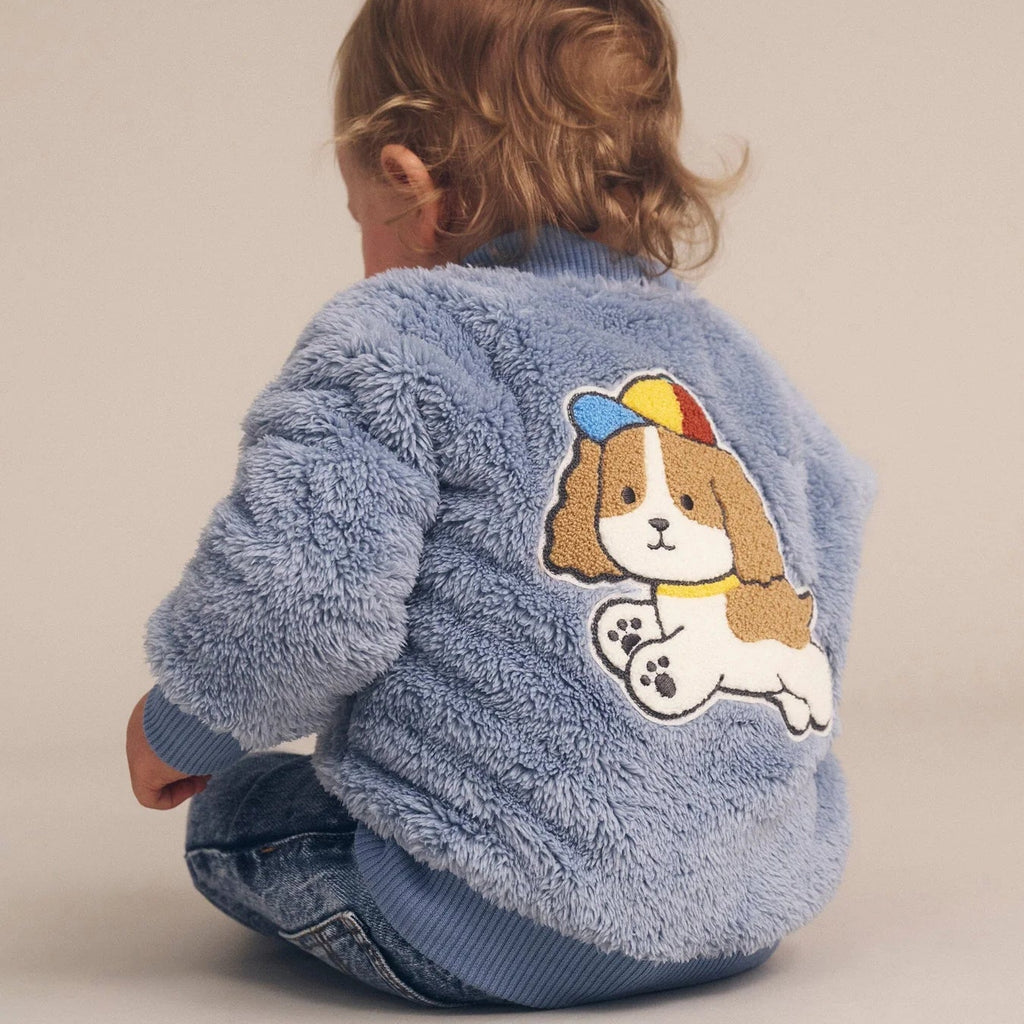 Happy Pup Furry Jacket | Stone Blue | Huxbaby
