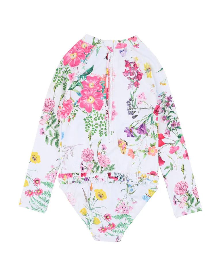 A fresh take on summer blooms, this gorgeous one-piece brings together vibrant flowers and playful frills for endless beach days. Designed with comfort and sun protection in mind, it's perfect for splashing about or relaxing poolside.