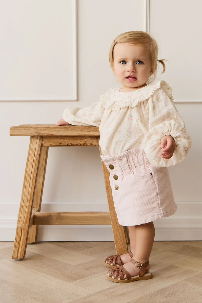 A sweet and breezy essential for your little one, the Malia Playsuit in Emelia Pink is designed for comfort and charm. Featuring a relaxed silhouette with a gathered bodice and soft elastic leg openings, this playsuit is perfect for warm days or layering with a cardigan in cooler weather. The delicate floral print in soft pink and green adds a dainty touch to this lightweight piece.