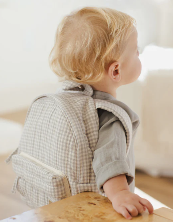 Our Mini Backpack features a main zip compartment, front zip pocket, top handle, and adjustable padded shoulder straps—perfectly sized for your little one.