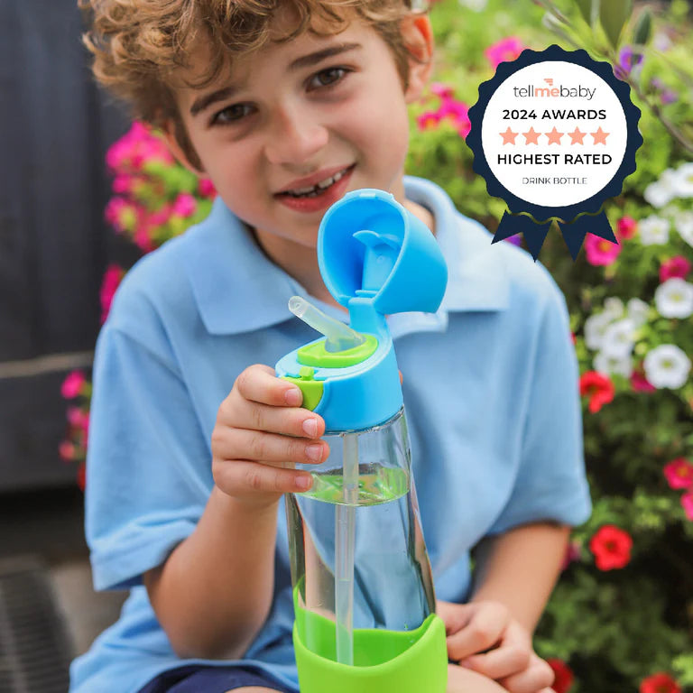 Its 600ml capacity and angled silicone straw lets kids drink to the very last drop and stay hydrated throughout the day. Minimal parts and ultra easy to assemble / disassemble and clean. Dishwasher safe (top rack only). Plus, customise the look with removable bumper