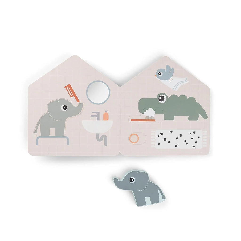 Open the door to the home of Elphee the cheerful elephant, this cardboard book invites your little one to interact by use their imagination, and make up stories.