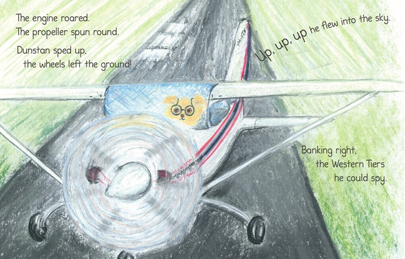 Dunstan, is the the bear Author Sharon grandmother made for me, Theodore is her dog who spent many years on the back console of Ellen’s car enjoying the sun and her Cessna aeroplane which she flew to destinations all over Tasmania. Sharon wanted this book to be a memory of wonderful times in Tasmania.