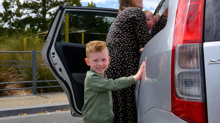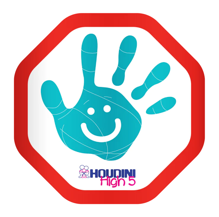 Houdini High 5 teaches your child to wait safely beside your vehicle. It gives them a fun job to find the hand when they get out, allowing parents to remove other children and items from the car which means less stress for you.