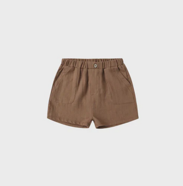 The perfect everyday short made from our soft woven cotton. Designed with a gathered elastic waistband, faux fly and button, and front and back pockets.