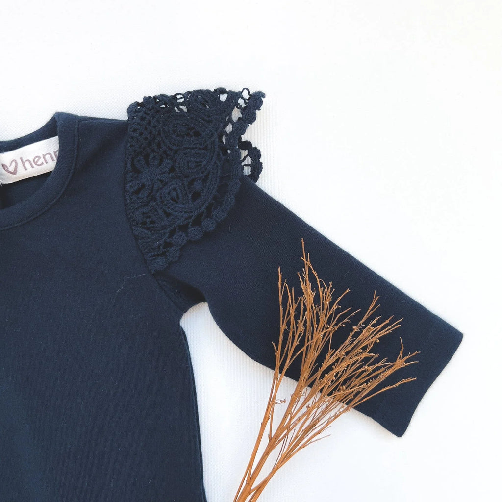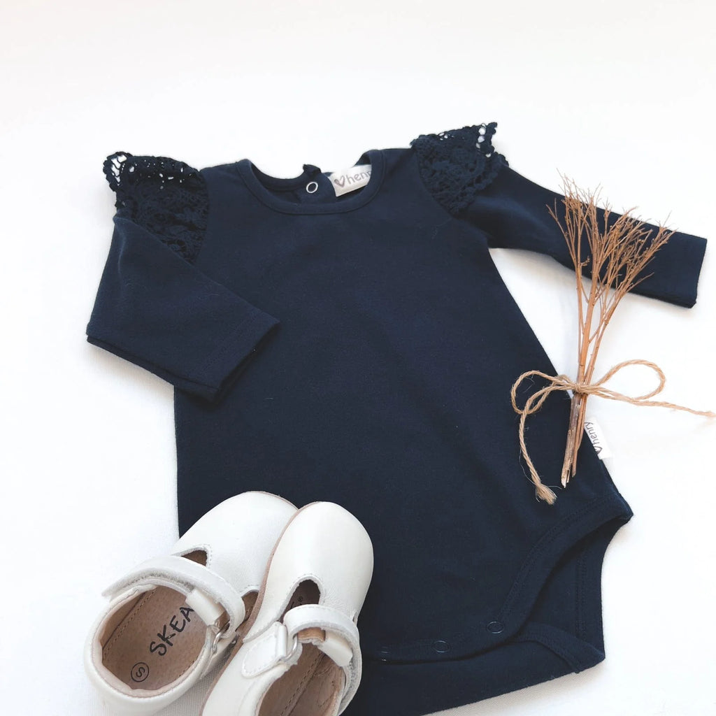 Baby Girls | Lace Sleeve Onesie | Navy | Love Henry