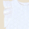 A timeless little outfit for sunny days and special memories, this beautifully crafted broidery romper is full of charm. Designed in soft cotton with delicate embroidery and pretty flutter sleeves with lace trim, it's a sweet blend of comfort and style. Perfect for parties, family outings or first photos, christening or naming day ceremonies - it's the kind of piece that feels just as special as the moment.