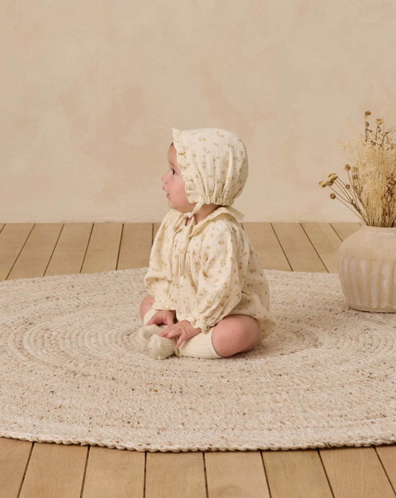 Collared Bubble Jumpsuit | Golden Floral/Natural | Quincy Mae