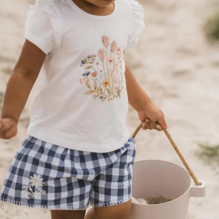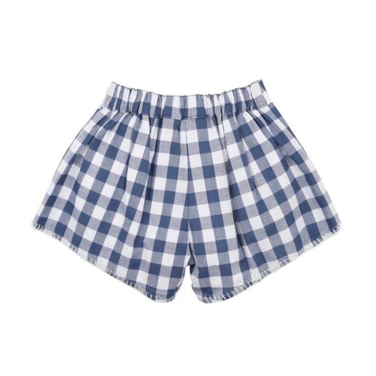 Hallie Embroidered Short | Blue Check | Bebe