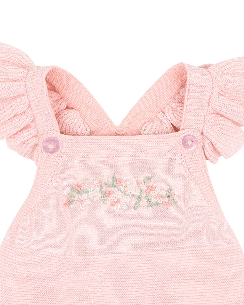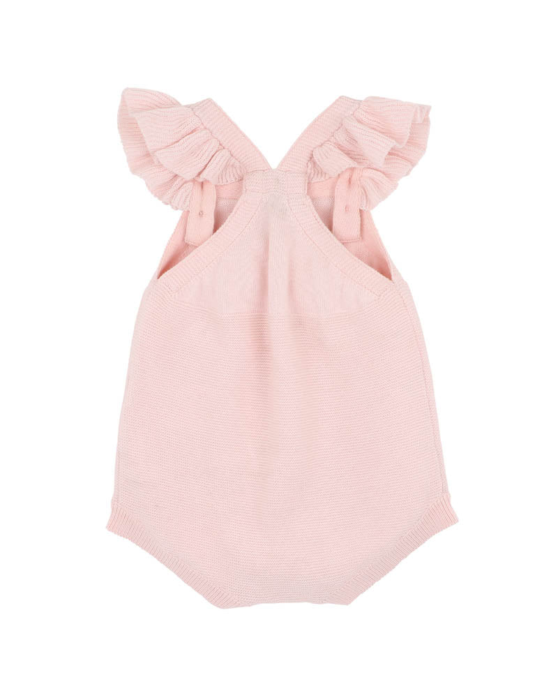 A sweet summer staple with vintage charm, this knitted romper is made for sunshine days and picture-perfect moments. Featuring fluttery shoulder frills and delicate hand embroidery across the chest, it’s a beautifully crafted piece designed for comfort, style, and a touch of whimsy. Perfect for special outings or sunny playdates, layered with a bodysuit or worn on its own.