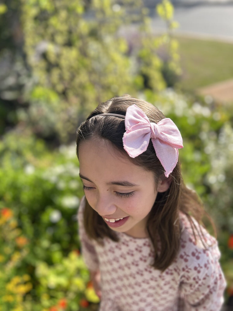 Dress your 'mini' up with the Mini & Me Fable Bow Headband. Featuring an oversized bow with textured edges, it is the perfect piece to compliment your birth announcement, gift or 'just because'.