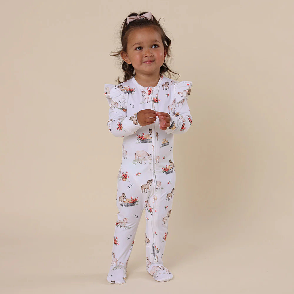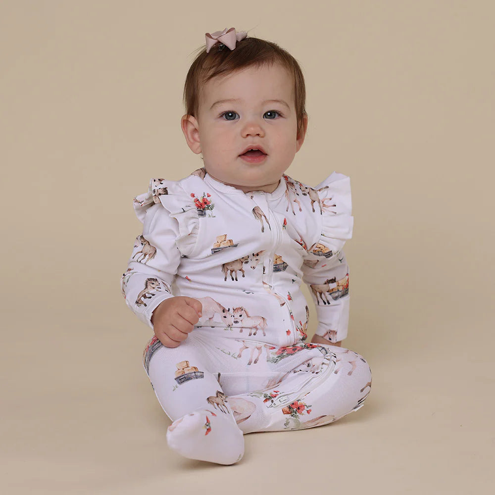 Pony Pals | Organic Snuggle Sleepsuit Zip Footie with Frill | Snuggle Hunny