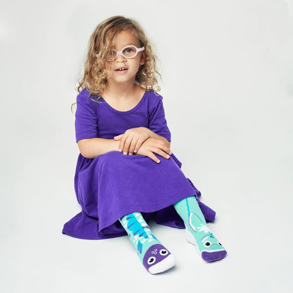 This aquatic socks pair comes adorably mismatched as a Dolphin and a Fish. We don't have to match to be besties! Let's create a friendlier world.