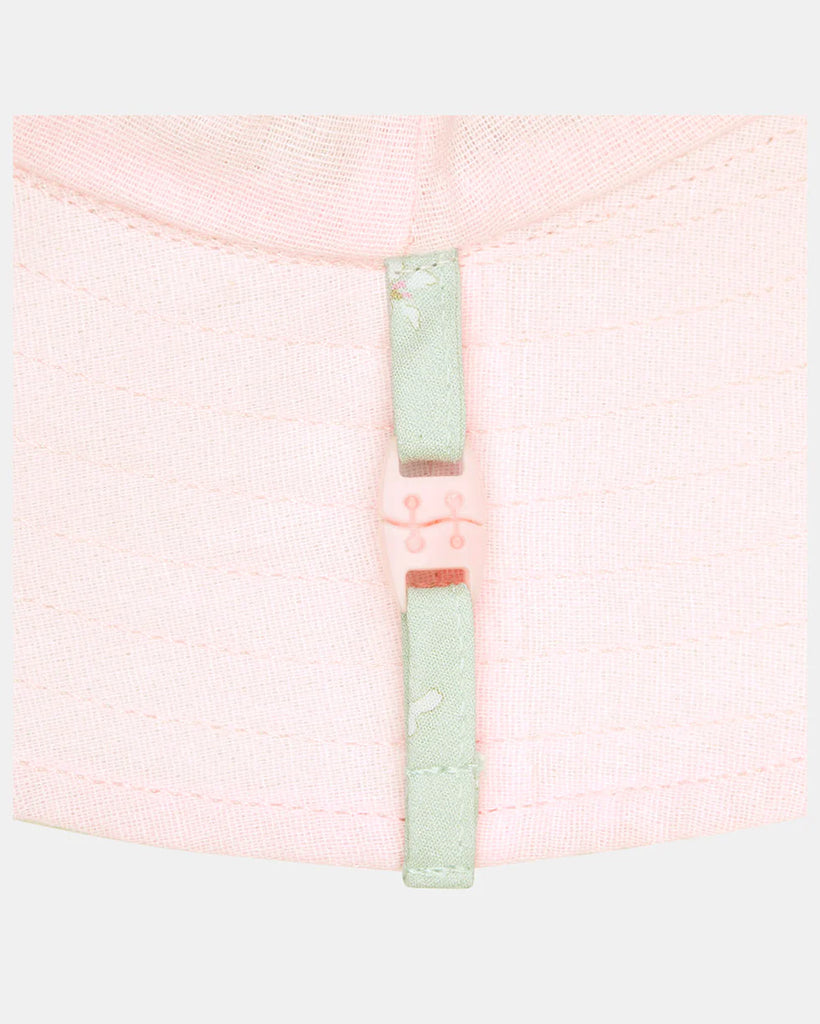 Toshi presents the classic Sunhat Nina, ideal for children of all ages. The broad and well-structured brim offers increased sun protection. A head tie creates adjustable sizing and the chin tie with toggle secures the hat for ease of wear. The security release clasp on the chin tie is designed to enhance wearer safety. The classic Toshi Sunhat is crafted from the finest quality 100% cotton and is fully lined for additional comfort.