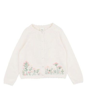 Bring a touch of garden charm to your little one's wardrobe with this beautifully crafted cardigan. Made from 100% Organic Cotton, it's as gentle on delicate skin as it is on the environment. The hem blooms with hand-embroidered wildflowers in soft pastel hues, creating a whimsical finish. Scalloped edging at the neckline, cuffs and hem adds an heirloom touch, while the button-through front makes for easy layering. Perfect for pairing with the Bonnie Check Embroidered Dress for an effortlessly sweet outfit.