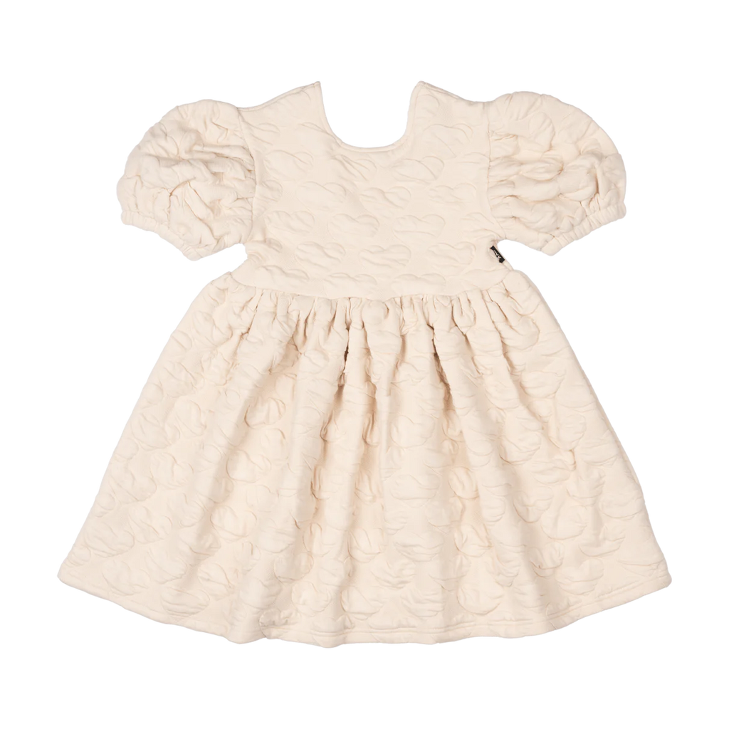 Ecru Heart Puff Sleeve Dress | Rock your Kid
