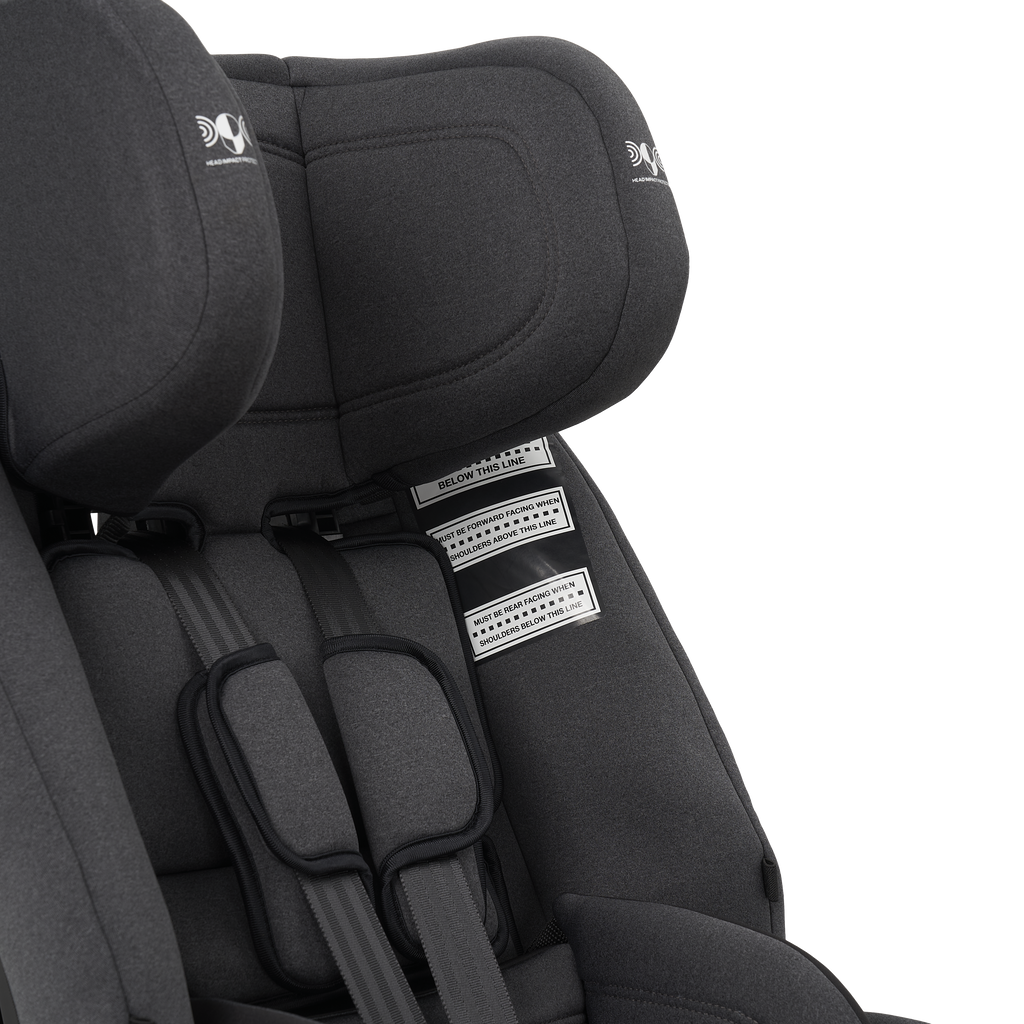 Being an extended rearward facing restraint, this seat offers best practice protection for longer. This restraint is also steel reinforced in the upper shell and headrest mechanism, adding extra strength to create a lightweight yet durable restraint your precious cargo.