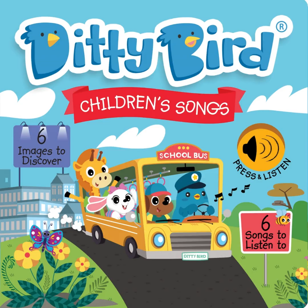Join Ditty Bird on a delightful musical adventure! Press the sound dot to play six beloved children's songs, teaching your little one about animals, body parts, and the ABCs. Get ready for fun with classics like "The Wheels on the Bus" and "Head, Shoulders, Knees & Toes"!