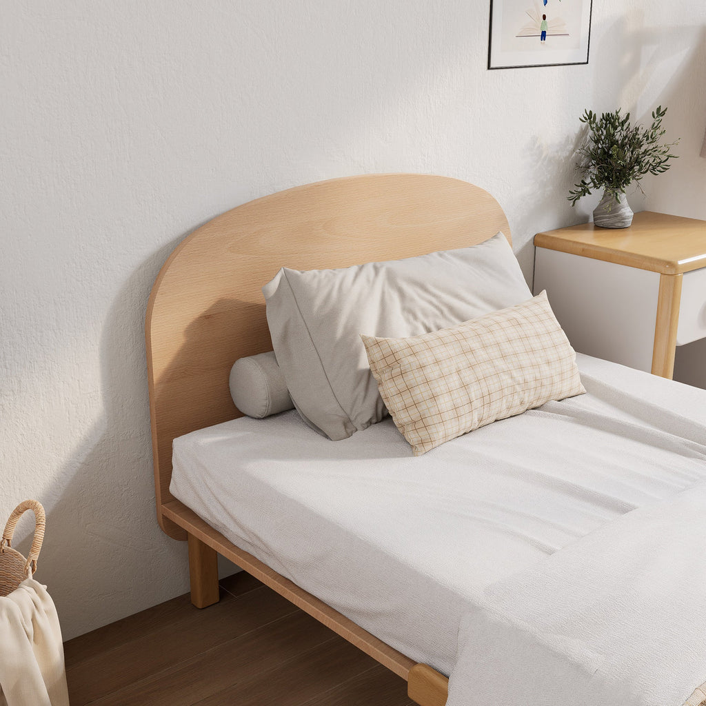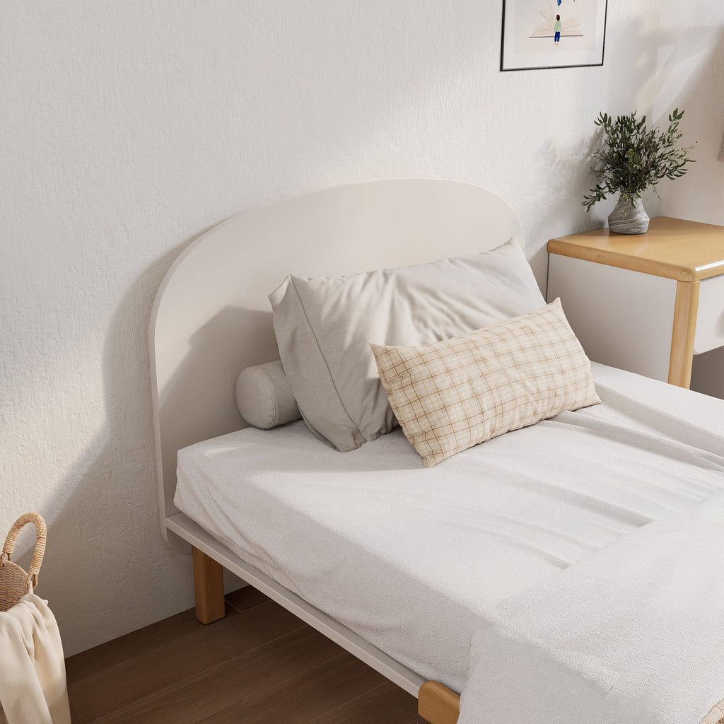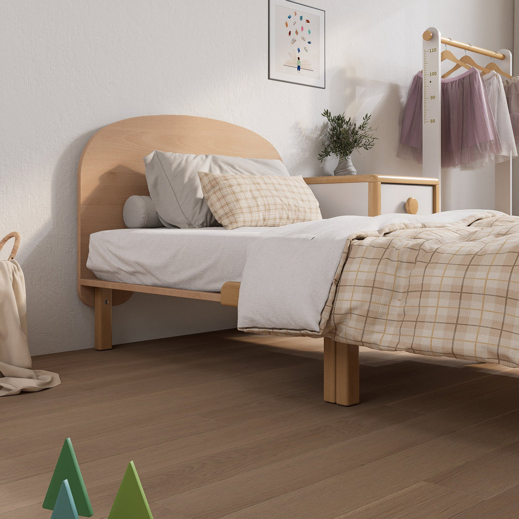 The Leaf Single Bed offers a minimalist design with clean lines and a simple, understated form. The gently curved, arched headboard adds a soft touch, enhancing the overall silhouette without overwhelming the space. Perfect for contemporary or Scandinavian-inspired interiors, the Oslo creates a calm, uncluttered look, making it a versatile choice for both children's rooms and guest bedrooms.