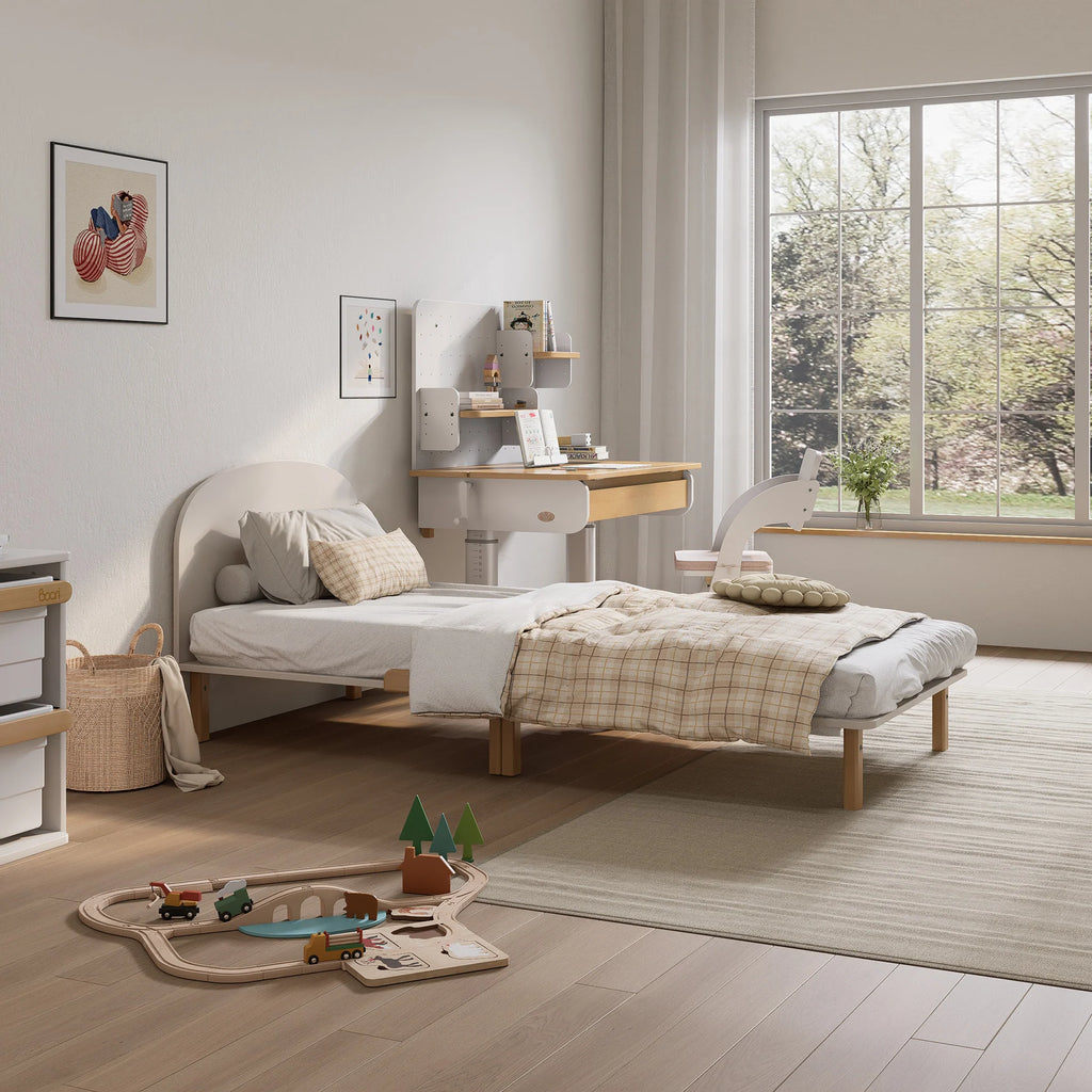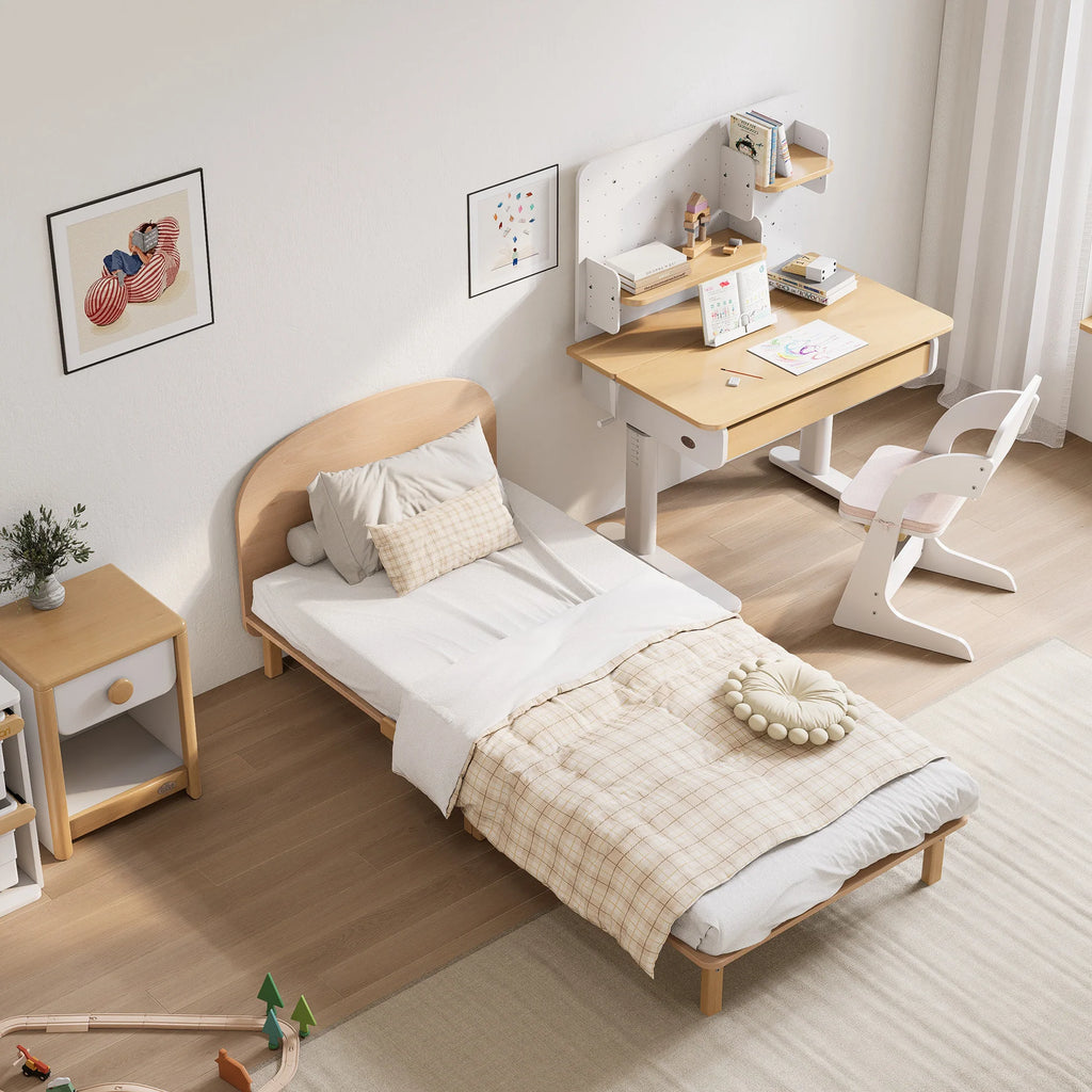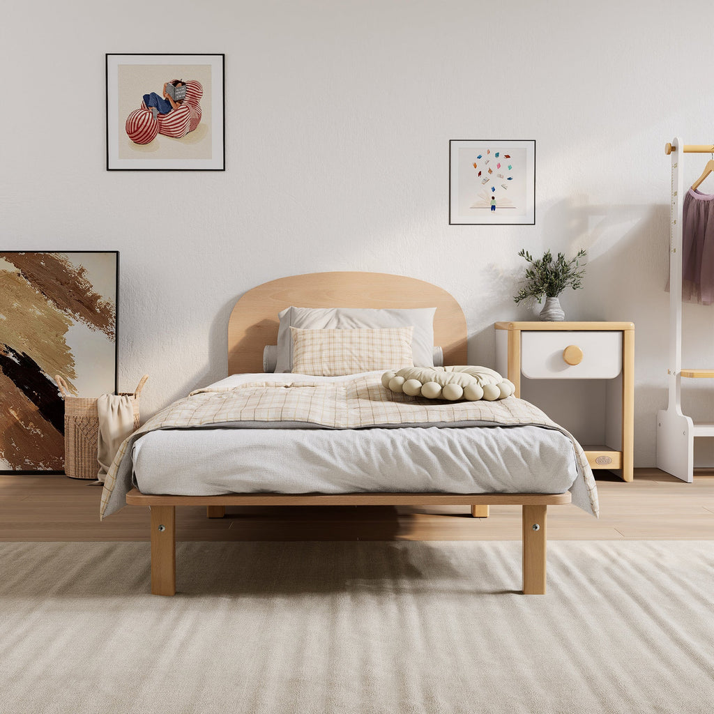 The Leaf Single Bed offers a minimalist design with clean lines and a simple, understated form. The gently curved, arched headboard adds a soft touch, enhancing the overall silhouette without overwhelming the space. Perfect for contemporary or Scandinavian-inspired interiors, the Oslo creates a calm, uncluttered look, making it a versatile choice for both children's rooms and guest bedrooms.