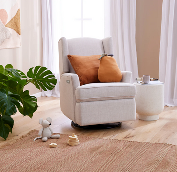 The electric recline function enables you to recline and sit up with ease with no effort required other than a simple press of a button. An electric recline nursery chair is ideal for those early weeks of feeding and especially for those who have had a c-section birth.