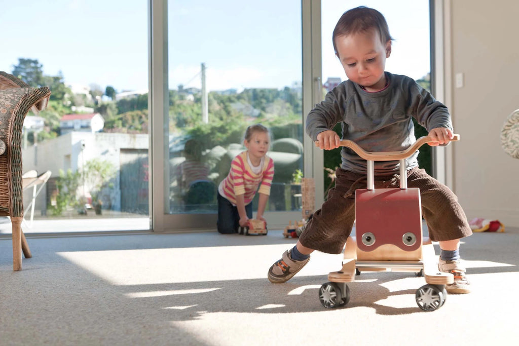 Wishbone Flip brings together contemporary form and super-functionality in a timeless toy your whole family will enjoy. Supports developmental milestones including sitting up, balance, steering, and key gross motor skills. Give your little one independence & joy. Simple assembly, just attach the handlebar. Made from beautiful birch wood, available in 6 colours - classic red, vintage red, olive, blue, white and vintage white. Comes in handy carry box. Size and weight 64 x 35 x 40cm, 2.9kgs.