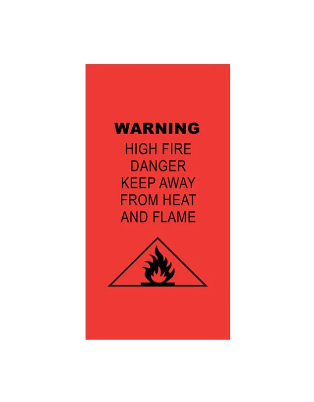 - WARNING: HIGH FIRE DANGER KEEP AWAY FROM HEAT AND FLAME