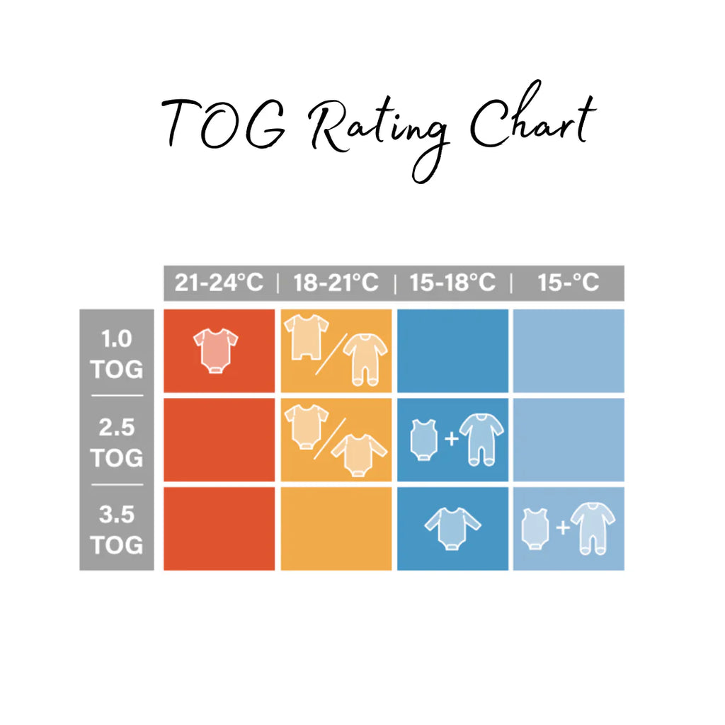 Please refer to the TOG rating and size card in the image gallery to make sure you are getting the right size and weight for your little one. Always allow more length if your little ones sleep with their arms above their head.