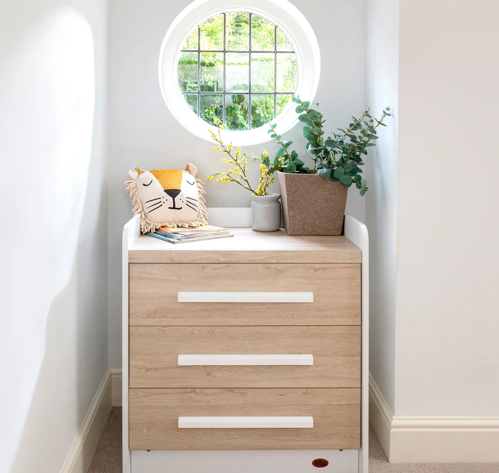 With modern styling and minimalist features, the Neat 3 Drawer Chest is a versatile storage solution that will complement most bedroom and nursery designs. Three soft-close drawers offer plenty of space for clothes and the guarded chest-top is ideal for arranging additional storage baskets or showcasing décor.
