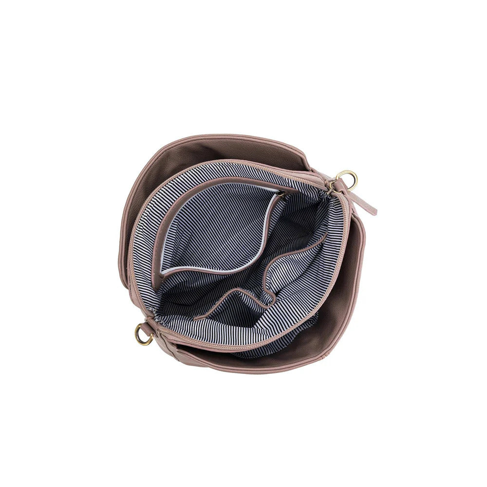 This versatile bag features three spacious compartments to keep all your essentials neatly arranged and two adjustable straps for multiple styling options.