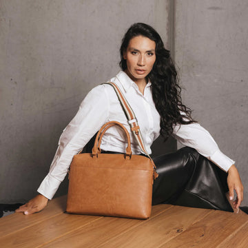 The Roma Computer Bag has an elegant design, complete with a top handle, exudes professionalism, making it the perfect accessory for office meetings and presentations.The optional crossbody strap offers hands-free convenience for your busy work day.