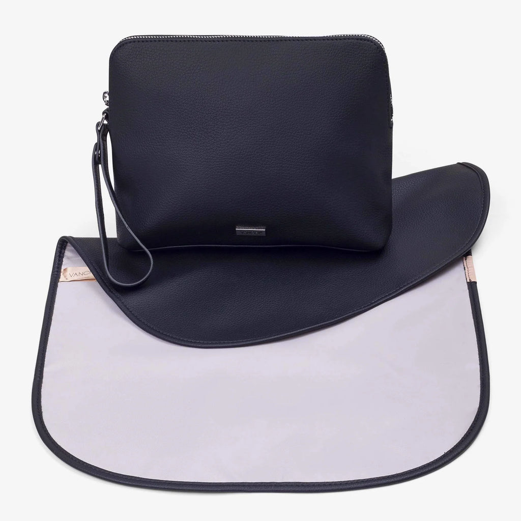 With 3 internal pockets including a zippered privacy pocket, the Everything Pouch is surprisingly spacious. It comes with a wristlet that you can hang from a pram or bag, and you can add matching wipeable vegan leather activity mat that fits perfectly inside.