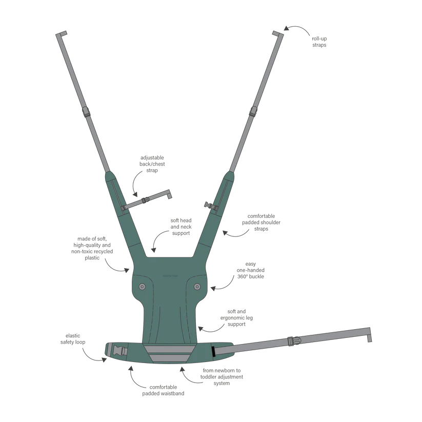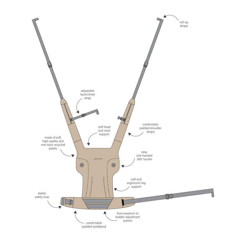 Experience ultimate comfort and sustainability with the Greentom Baby Carrier. It features an ergonomic design with three versatile carrying positions: front carry inward-facing, hip carry, and back carry. Made of high-quality, non-toxic recycled plastic, this carrier ensures safety and eco-friendliness for both you and your little one.