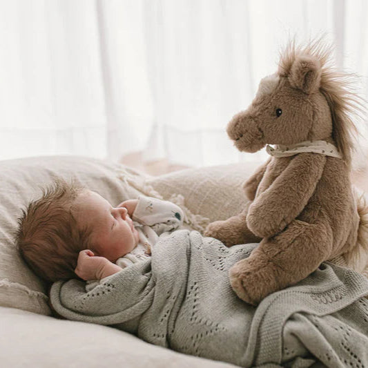Meet the sweetest, slouchiest newborn snuggle buddy to trot onto the Nana Huchy farm. Harvey the Horse is a lumbering yet inquisitive foal with four left hooves, soft, chubby legs & a big smooshy belly perfect for nuzzling into. Harvey’s older cousin Diego the Donkey loves taking little Harvey to Luna Park to ride the Great Scenic Railway & munch on Fairy Floss with a sprinkling of oats.