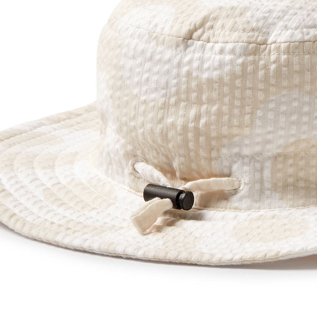 Say hello to your little one’s new summer favourite – our cotton seersucker sun hat. Made from lightweight, breathable cotton seersucker, this sweet and practical hat features a subtle all-over daisy print and a wide brim to help protect delicate skin from the sun. With an adjustable fit and secure safety clasp, it’s designed to stay in place during all-day play. Soft, comfortable, and sun-smart – the perfect finishing touch for warm-weather adventures. Key Features: Adjustable chin strap with breakaway clasp. Adjustable brim for a snug fit. Packaged in a bio-degradable bag. Details: 100% organic cotton. Machine washable. Made in India.