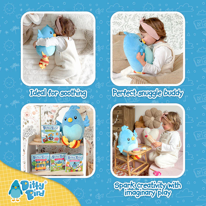 - Cuddly Ditty Bird Companion: Meet Ditty Bird, a delightfully soft and huggable plush toy inspired by the beloved character from the hit musical book series, meticulously crafted with premium fabrics and detailed stitching.