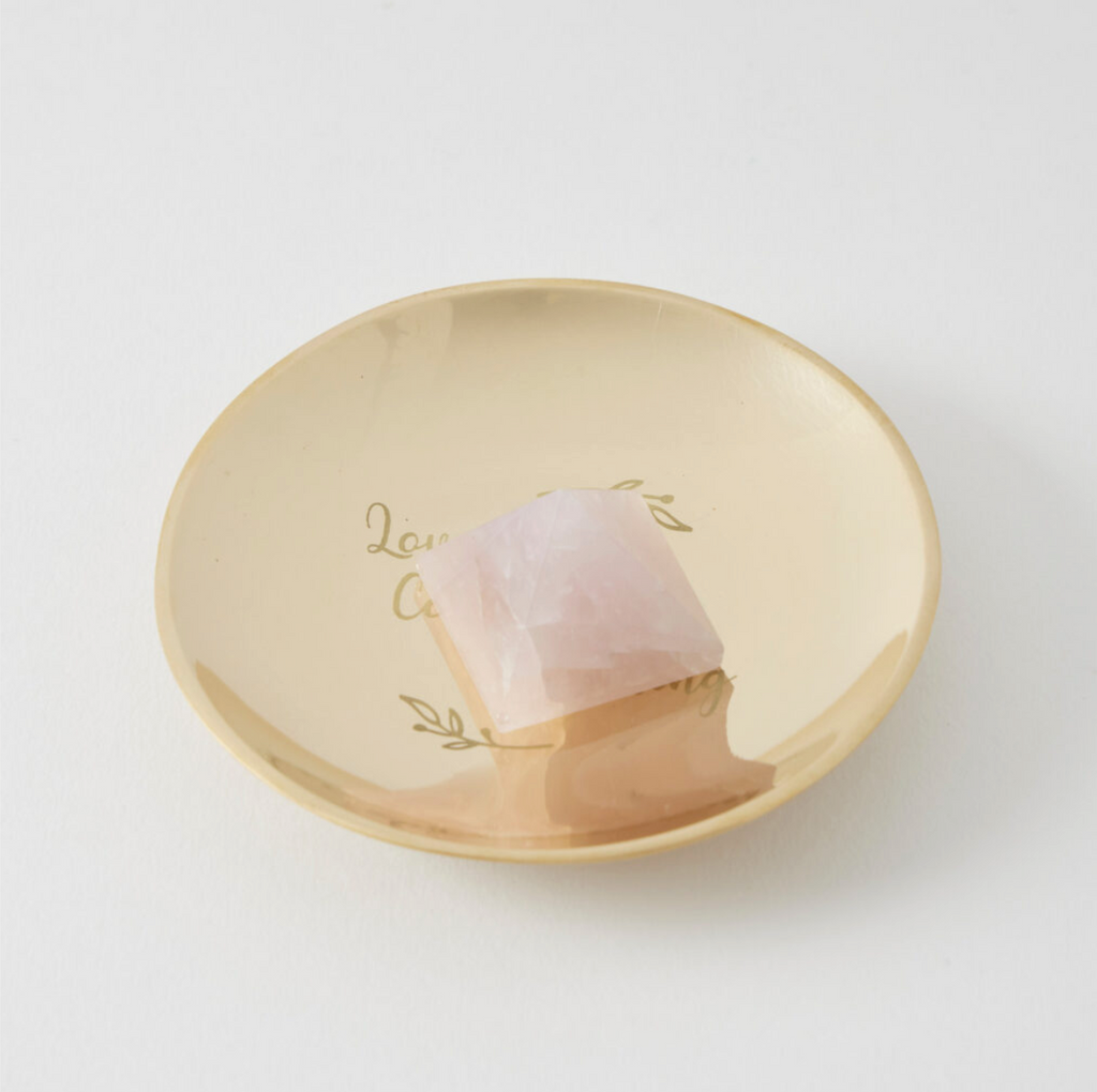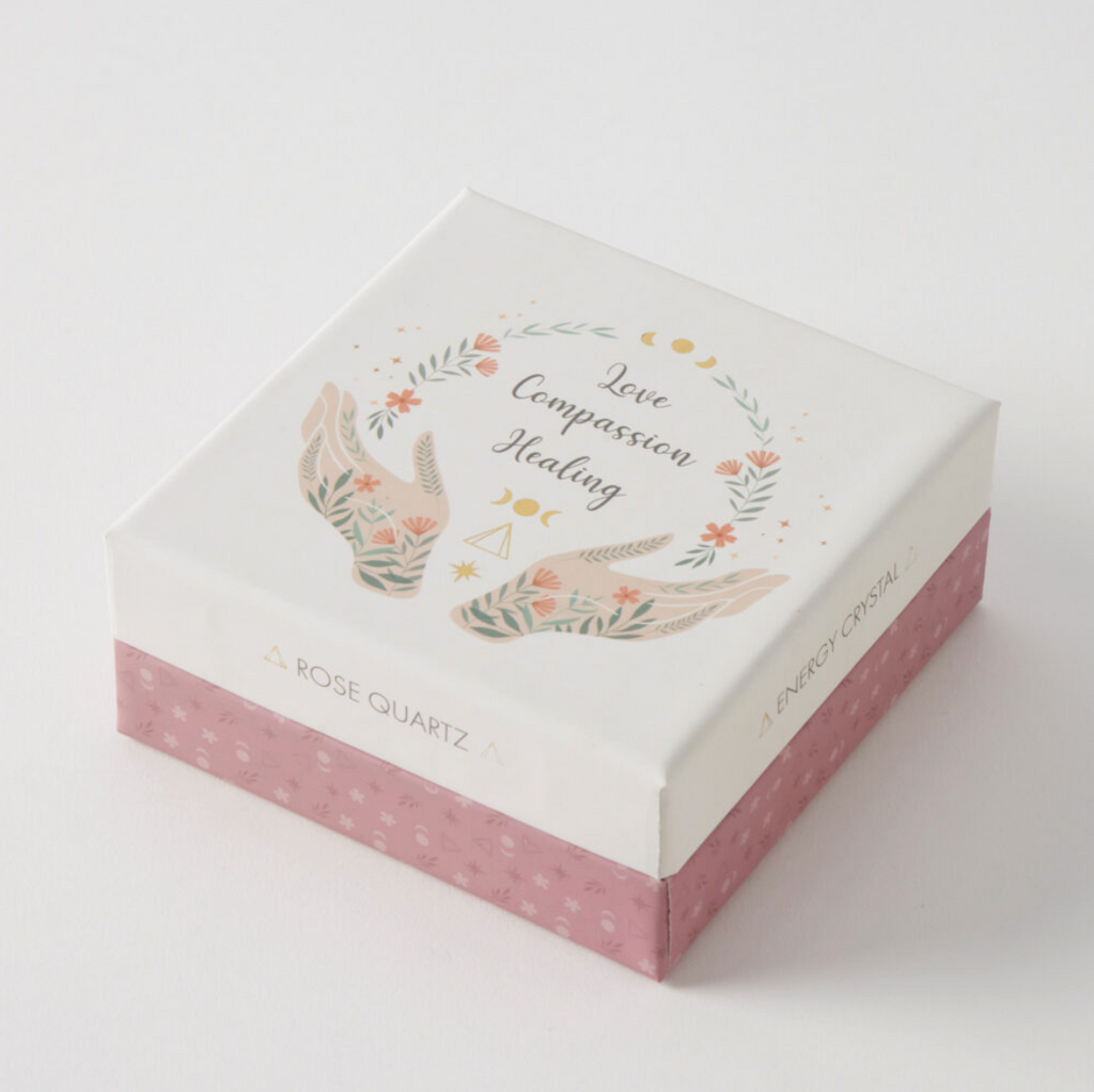 The Rose Quartz is said to promote Love, Compassion, and Healing. Crafted into a pyramid shape, this crystal is designed to transmit your intentions to the universe. Comes with a laser-etched brass plate to carry this semi-precious stone. Artfully hand-cut, each stone exudes one-of-a-kind beauty. The perfect gift set for those in touch with their spiritual side.