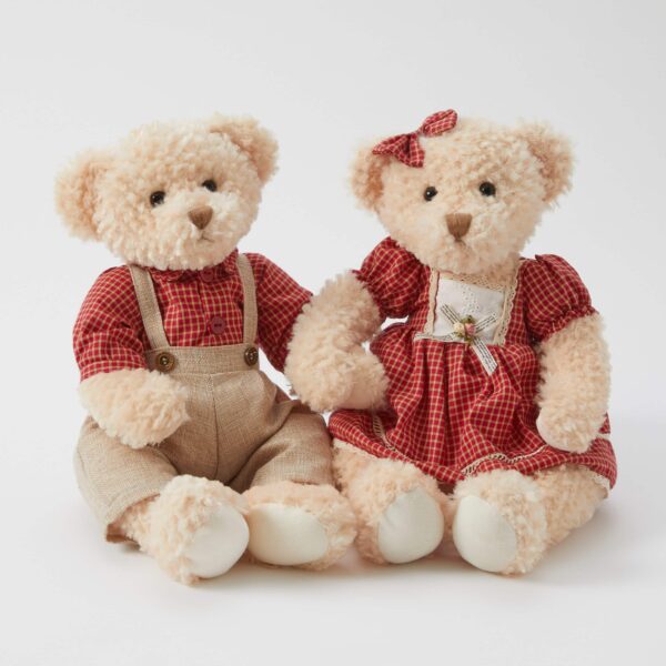 Ethel is a sweet little bear who loves to bake! She wears a pretty plaid dress and a hair bow. Ethel is made from premium quality plush faux fur fabric. Wearing matching outfits with another bear named Edward, these two are inseparable—so get them together so they don’t have to separate!