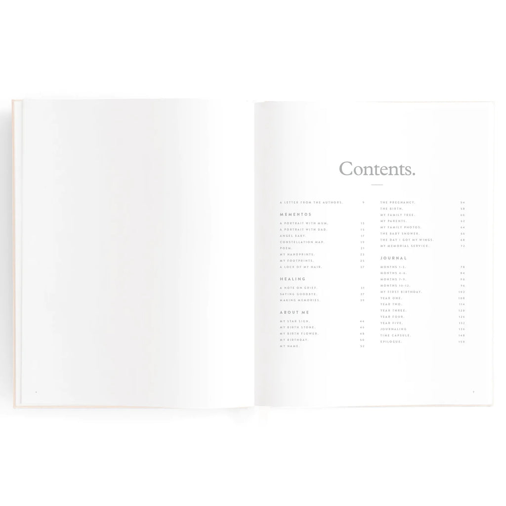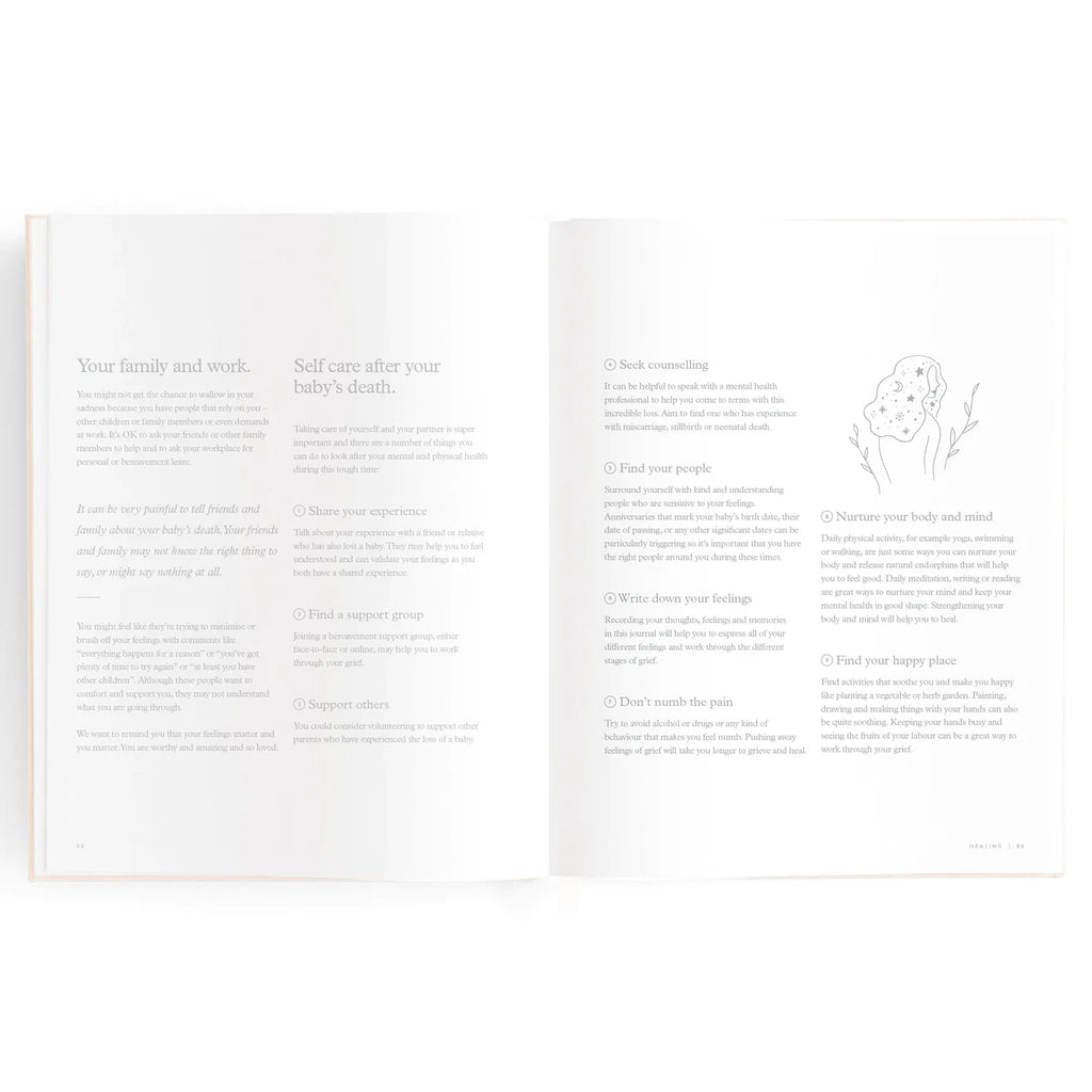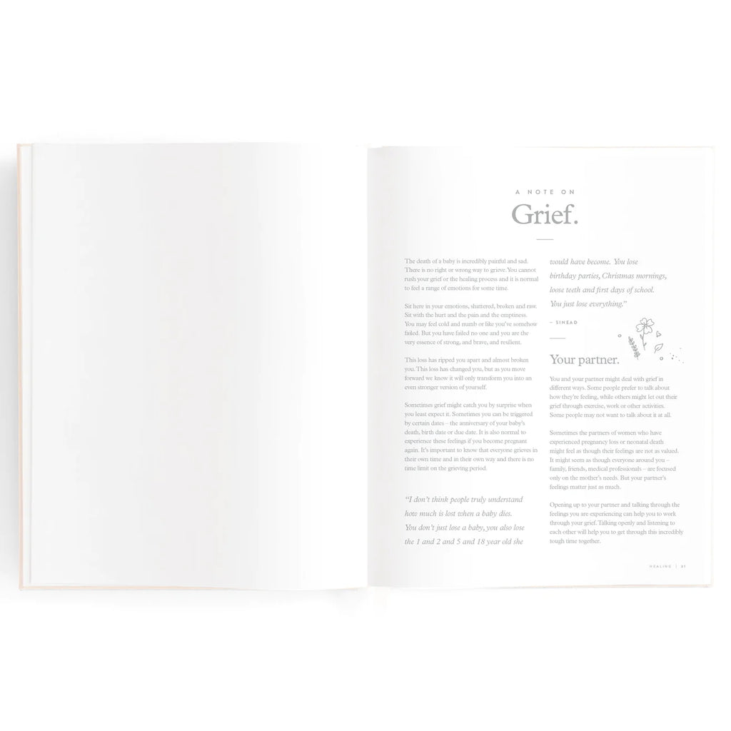 This journal has four parts - Mementos, Healing, About Me and Journal. It's designed to honour their little one's memory and also be guided through their grief. Also available in a beautiful keepsake box where you can place personal items such as a lock of hair, photos, hospital tags and cot cards or pressed flowers.