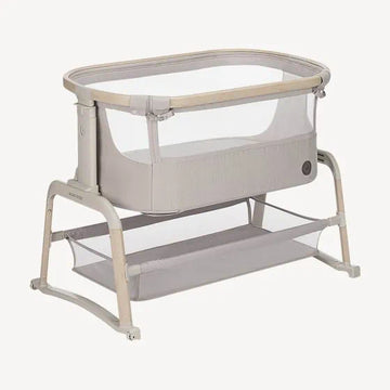 Bringing your newborn home is a cherished moment, and the Iora Air Co-Sleeper is designed to provide comfort, convenience, and peace of mind. This luxury bedside crib keeps your baby close, strengthening your special bond while ensuring a soothing and restful sleep. Its plush, premium mattress offers exceptional comfort, while the gentle rocking function helps lull your little one back to sleep during restless moments. Crafted with super-soft, 100% recycled fabrics and breathable mesh sides, it promotes airflow for a safe and cozy sleep environment. Plus, the spacious under-bed storage basket keeps all your baby essentials organised and within reach—making night time care effortless.