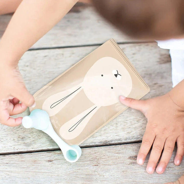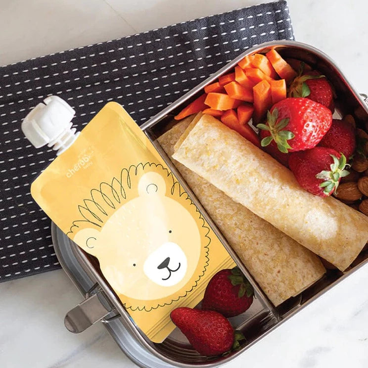 Overview Built to last, our reusable food pouches are your secret weapon for baby’s weekly meal prep and will happily snuggle inside a lunchbox (think yoghurt, frozen smoothies, custard and more). For fast and easy meal prep simply make your desired meal (using our baby food maker) then pour in the healthy nutritious food, seal, freeze, store, warm and serve, all from the one pouch. Slide them into our pouch organiser for tidy storage in the fridge/freezer.