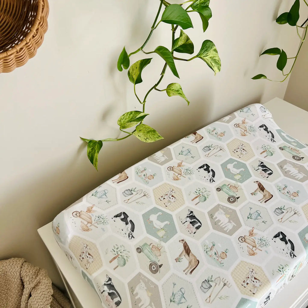 The Mini & Me Co-Sleeper Sheet Patchwork Farm is luxuriously soft & stretchy allowing it to fit bassinet mattresses & change pads/mats of different shapes & sizes. That's right, not only does it fit your Bassinets, but you can also use it as a change pad cover, in your co-sleeper, in your pram, the options are endless.