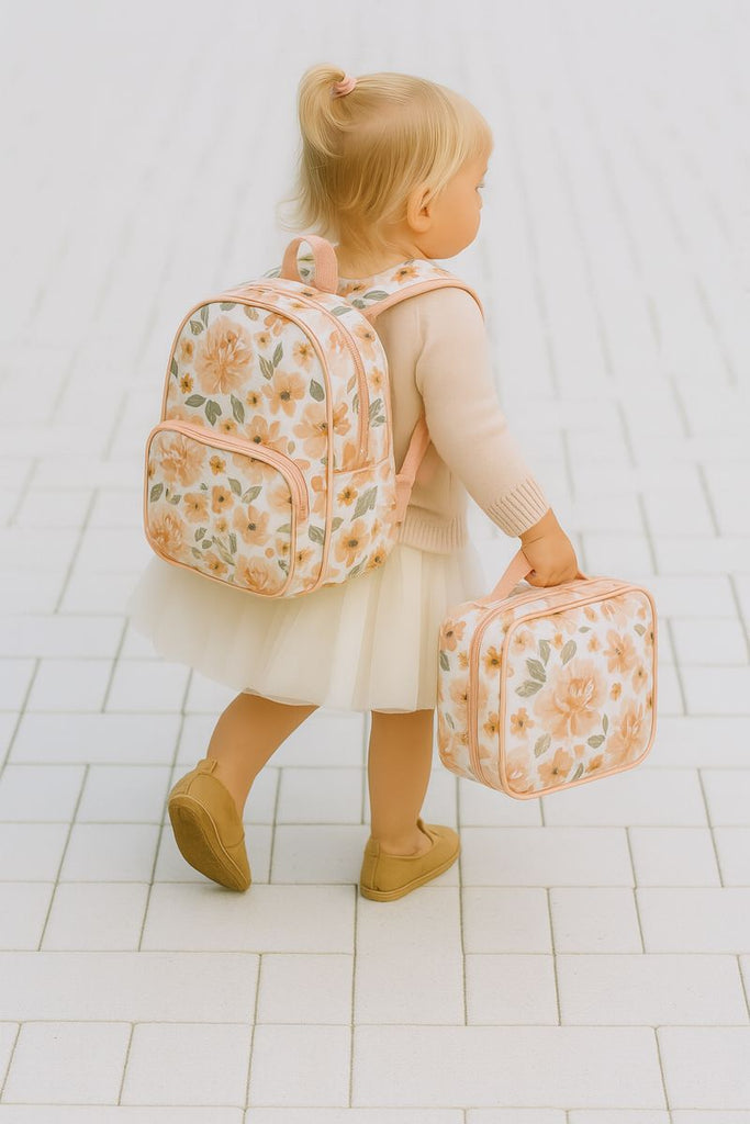Sweet, soft, and oh-so-pretty – our Peach Blossom backpack is made for your little daydreamer. Featuring a delicate floral print in warm peachy tones with soft green leaves, this backpack blends beauty with everyday practicality.
