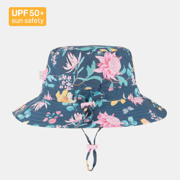 Toshi presents the classic Sunhat Waratah, ideal for children of all ages. The sunhat has a broad and well-structured brim. The UPF 50+ UV rating indicates maximum sun protection. The head tie with toggle creates adjustable sizing. A chin tie with toggle secures the hat for ease of wear. The security release clasp on the chin tie is designed to enhance wearer safety. The classic Toshi Sunhat is crafted from the finest quality 100% cotton and is fully lined for additional comfort.